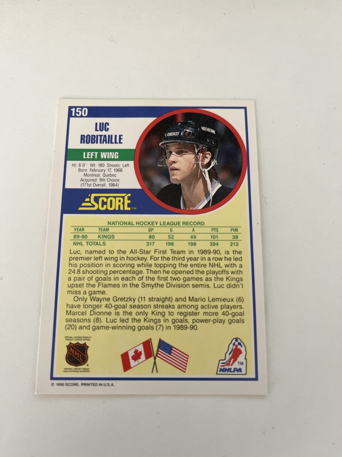 1990 Score #150 Luc Robitaille – Los Angeles Kings