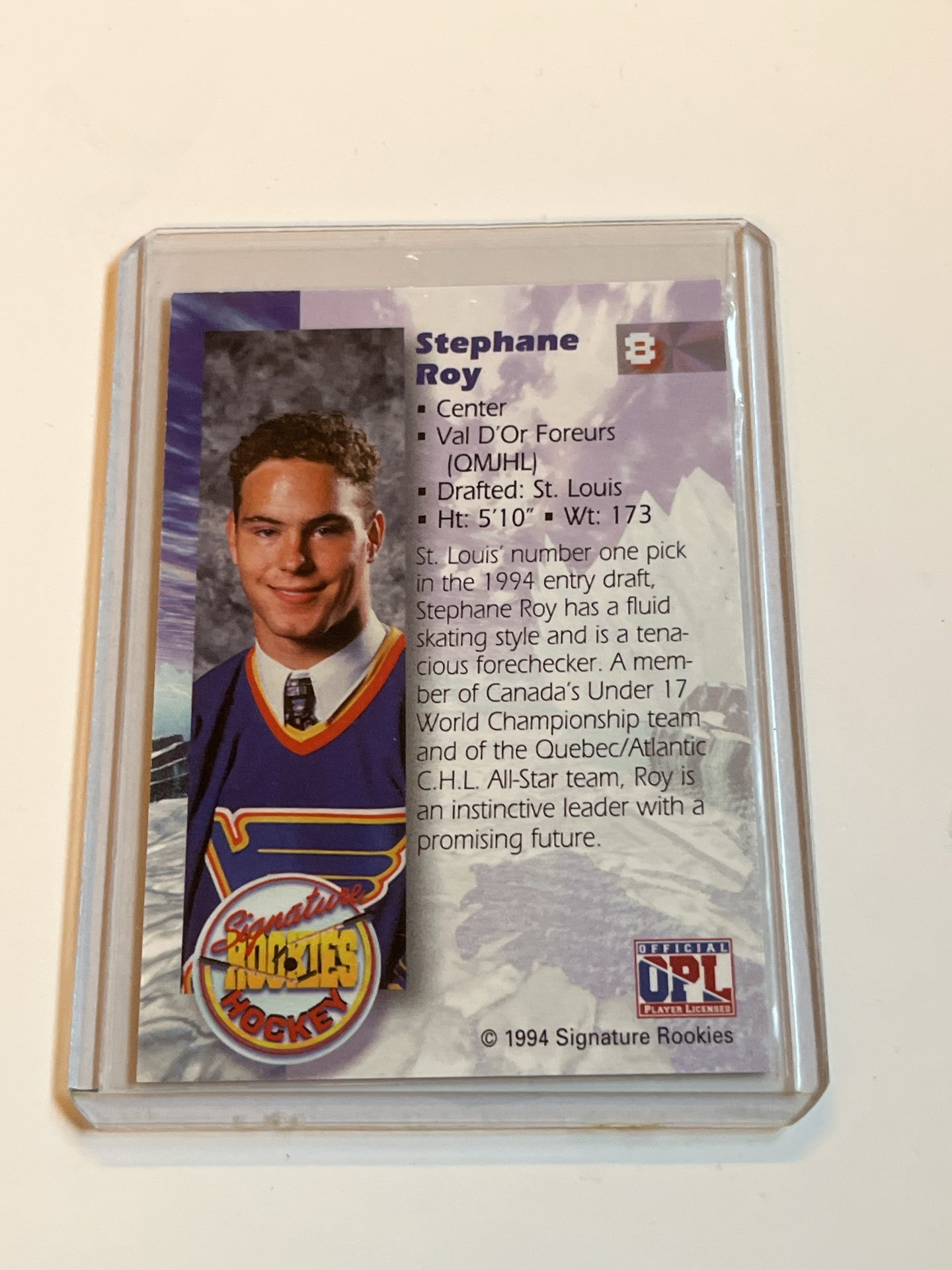 Stephane Roy Signed 1994 Signature Rookies Auto Hockey Card #8 /7750